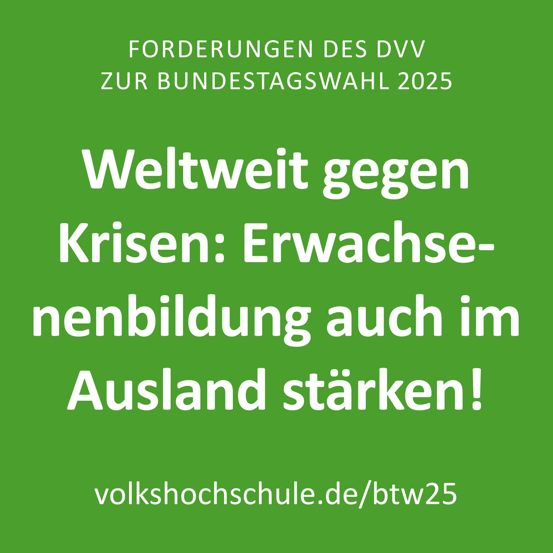 Die kommende Bundesregierung muss das immense Potenzial der Weiterbildung als ihre zentrale Ressource begreifen, nutzen und fördern. Der Bund muss sich in Abstimmung mit den Ländern und Kommunen strukturell und finanziell stärker in der Weiterbildung engagieren. Das Recht auf Weiterbildung für alle muss eingelöst werden.