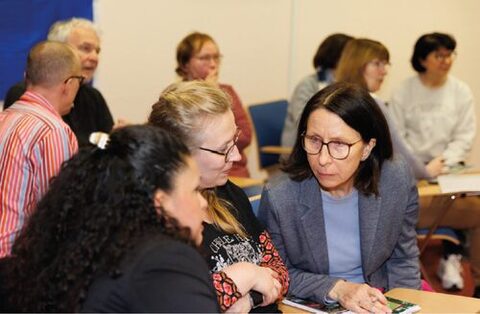 „Europa? Das sind für uns zwei Handlungsebenen: die personelle und die inhaltliche“, erklärt Birgit Krumme. So sei Samantha Goff-Stieger die erste Mitarbeiterin nichtdeutscher Herkunft. Und bei den Kursleitenden setze sich dieser Trend erfreulicherweise fort. Ein wichtiges Anliegen sei die Sensibilisierung der Kursleitungen für Teilnehmende aus aller Welt. Nicht ohne Grund habe die vhs Schwerin gemeinsam mit schwedischen, italienischen und slowenischen Einrichtungen der Erwachsenenbildung Lehrmaterialien für Workshops im Rahmen des Erasmus+-Projekts EMPOWER[1] erarbeitet. Dort sollen Migrantinnen unternehmerische Kompetenzen und Schlüsselqualifikationen erwerben. „Diese Materialien werden derzeit in weitere Sprachen übersetzt und finden so europaweit Anwendung in Kursen“, betont Birgit Brumme nicht ohne Stolz.