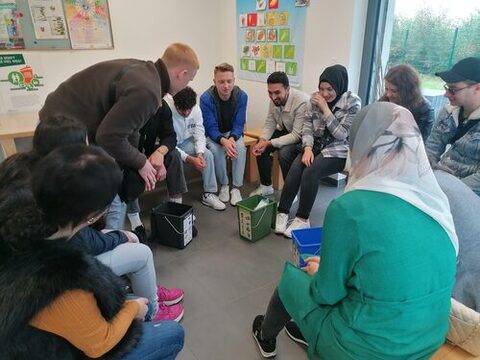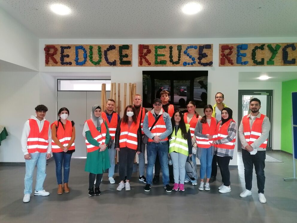 Neben dem Spracherwerb steht für die Jugendlichen und jungen Erwachsenen bürgerschaftliche Bildung auf dem Programm. Dazu gehört nicht nur der Besuch im Bonner Haus der Geschichte, sondern auch Projektlernen an besonderen außerschulischen Lernorten: z.B. der Mülltrennungsanlage in Linkenbach. Dabei entsteht nicht nur ökologisches Bewusstsein, sondern auch Kunst.