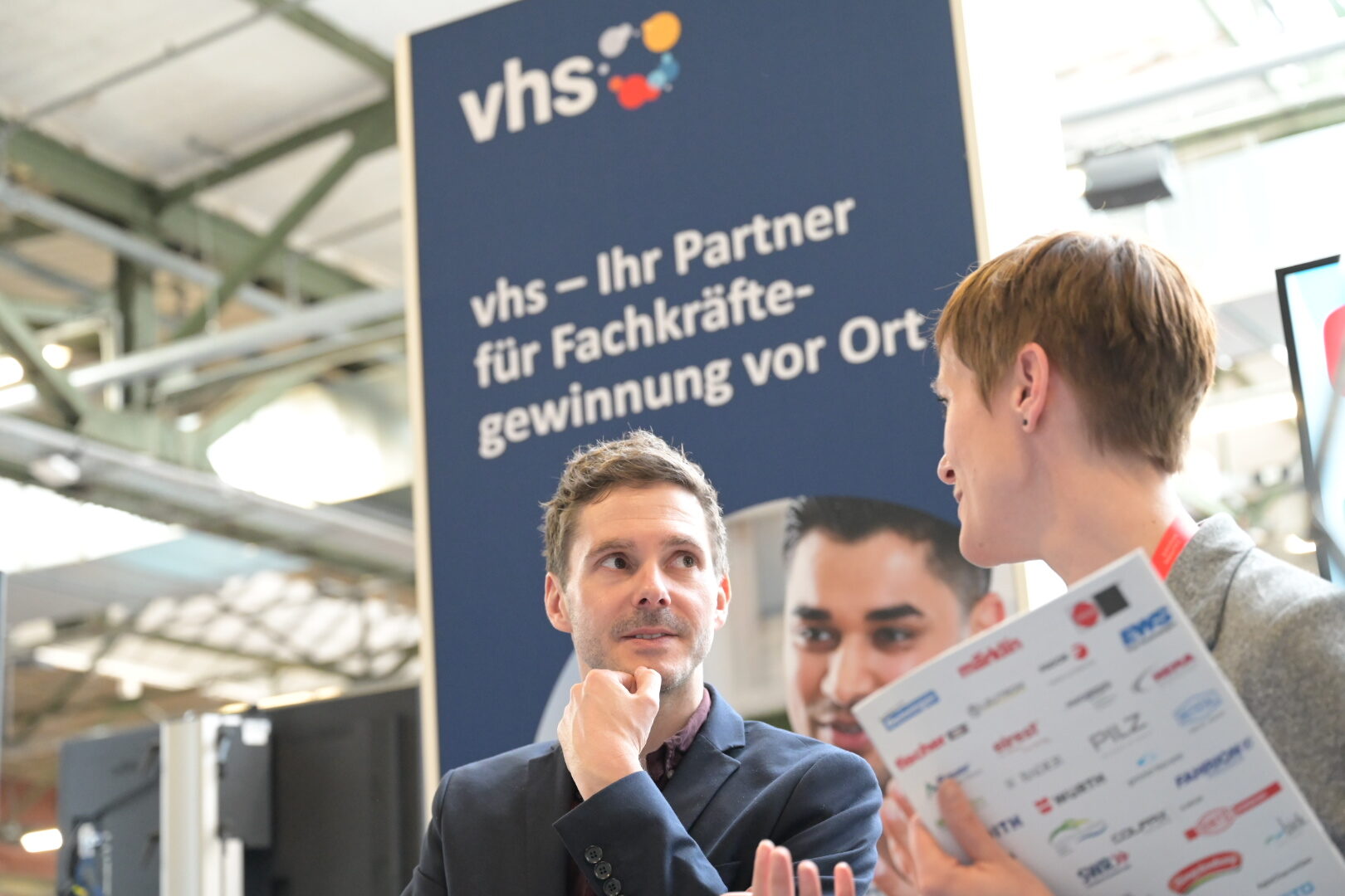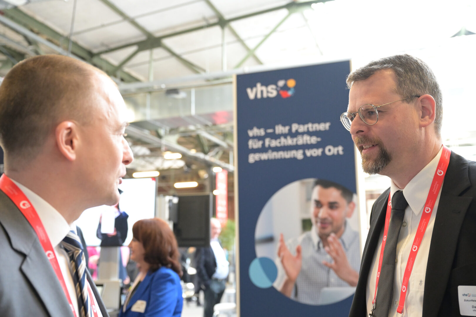 Der rege Zulauf und die anregenden Gespräche mit Gästen am Messestand haben gezeigt, dass die Arbeit der Volkshochschulen unverzichtbar ist. Angesichts der vielfältigen Herausforderungen der deutschen Wirtschaft, von der Digitalisierung über die nachhaltige Transformation bis hin zur Fachkräftegewinnung, werden Volkshochschulen von Unternehmerseite als kompetente, professionelle und verlässliche Partner vor Ort gebraucht und wahrgenommen. Die Resonanz auf dem Zukunftstag Mittelstand bestärkt in der Überzeugung, dass die Volkshochschulen aufgrund ihrer flächendeckenden Verankerung in den Kommunen vor Ort wie kein anderer Weiterbildungsanbieter in der Lage sind, passgenaue, auf individuelle Bedarfe von Kleinst-, kleinen und mittleren Unternehmen (KMU) zugeschnittene Angebote zu entwickeln und umzusetzen.