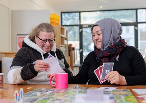 Auch an zwei weiteren Standorten in Hessen haben die vhs ein leicht zugängliches Angebot zum Lesen- und Schreibenlernen geschaffen, auf dem Marburger Richtsberg gemeinsam mit dem Bewohnernetzwerk für soziale Fragen e.V. und im Offenbacher Nordend zusammen mit dem Stadtteilbüro. Sibylle Klingebiel, seit Jahren mit Grundbildung befasst, setzt auf solche pragmatischen Herangehensweisen: Um Menschen für das Lernen zu gewinnen, gelte es, die verschiedensten Wege auszuprobieren.