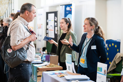 Der Deutsche Volkshochschul-Verband (DVV) hält – unter anderem über den Begleitausschuss der deutschen Nationalen Koordinierungsstelle Europäische Agenda für Erwachsenenbildung – seit vielen Jahren eine enge Verbindung zur Nationalen Agentur beim Bundesinstitut für Berufsbildung (NA beim BIBB) (Öffnet in einem neuen Tab), die das Erasmus+ Programm in der Erwachsenenbildung in Deutschland umsetzt. Im Rahmen dieser Kooperation wurde erst kürzlich auf der Fachbereichsübergreifenden Konferenz, die der DVV in Jena veranstaltete, über die umfassenden Möglichkeiten von Erasmus+ informiert. Beim „Projektemarkt“ lernten die Teilnehmenden ausgewählte Projekte des Programms kennen, an denen Volkshochschulen bzw. ihre Landesverbände beteiligt waren, und erhielten wertvolle Einblicke in deren Praxis.