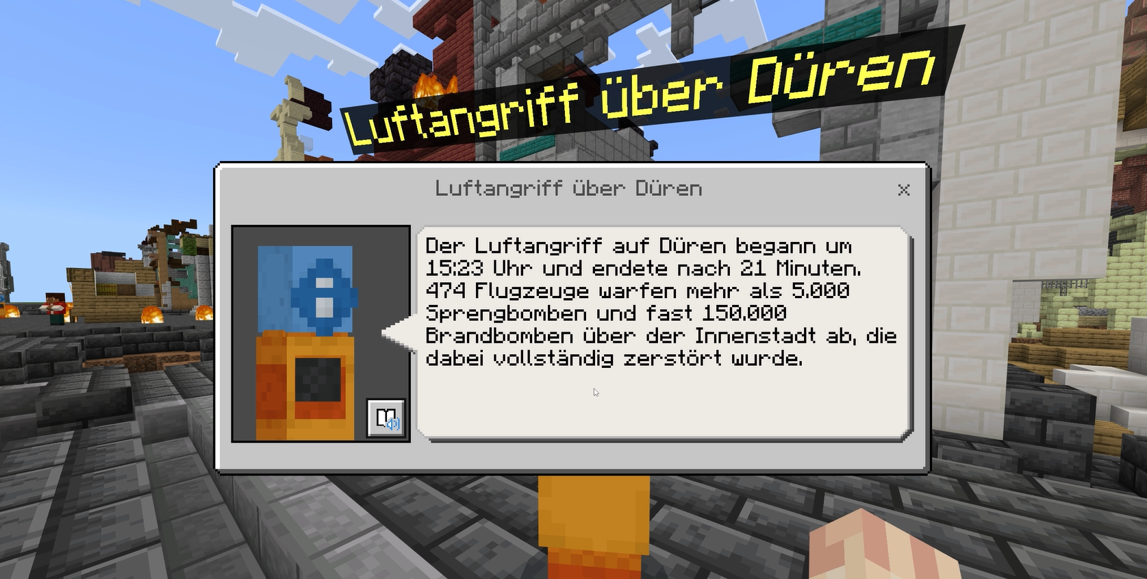 Die vhs Rur-Eifel (Öffnet in einem neuen Tab) widmet sich in ihrem Erinnerungsprojekt zur Zerstörung Dürens im Zweiten Weltkrieg der Frage: Wie kann man Geschichte begreifbar machen – und junge Menschen für die Auseinandersetzung mit Krieg und Verantwortung gewinnen? Die Antwort fand die vhs im Computerspiel Minecraft. Kinder und Jugendliche der 5. bis 7. Jahrgangsstufe bauten darin die im Zweiten Weltkrieg zerstörte Dürener Innenstadt nach – Stein für Stein, digital und kritisch reflektiert. Das Projekt zeigt exemplarisch, wie digitale Räume zu Orten politischer Bildung werden können.