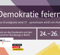 Heute vor genau 75 Jahren wurde das Grundgesetz für die Bundesrepublik Deutschland verkündet. Die Feierlichkeiten zu diesem Jubiläum beginnen mit einem Staatsakt in Berlin – im Anschluss daran veranstaltet die Bundesregierung vom 24. bis zum 26. Mai 2024 ein Demokratiefest, zu dem alle Interessierten herzlich eingeladen sind.