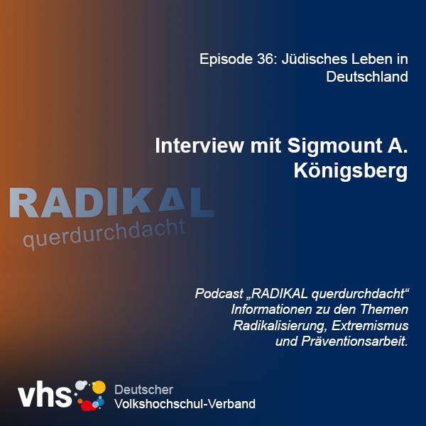 Folge 36 (Öffnet in einem neuen Tab)ist seit letzter Woche auf allen Streaming-Plattformen verfügbar. Im Interview mit Sigmount A. Königsberg von der jüdischen Gemeinde aus Berlin geht es um die Aktivitäten der jüdischen Volkshochschule und über seine Arbeit als Beauftragter gegen Antisemitismus. Er berichtet von Veranstaltungen und fordert uns alle auf, in Situationen, in denen Menschen diskriminiert werden, zu handeln.