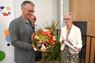 Monika Nickels, langjährige stellvertretende Vorsitzendes des vhs-Landesverbandes, wurde im Anschluss von Landtagspräsident Hering, Minister Schweitzer und DVV-Präsidentin Kramp-Karrenbauer verabschiedet, dabei dankten sie ihr für ihr unermüdliches Engagement für die Volkshochschulen im Land. Nach 26 Jahren als Leiterin der Kreisvolkshochschule Mainz-Bingen geht sie im Juni in den Ruhestand.