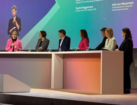 DVV-Direktorin Julia von Westerholt„Die Debatte über Künstliche Intelligenz ist keine Elfenbeinturmdebatte. Wenn wir Menschen dazu bringen wollen, diese Angebote nicht nur kompetent, sondern auch mit Neugier und Offenheit zu nutzen, müssen wir ihnen ihre Ängste nehmen und den Austausch suchen.“