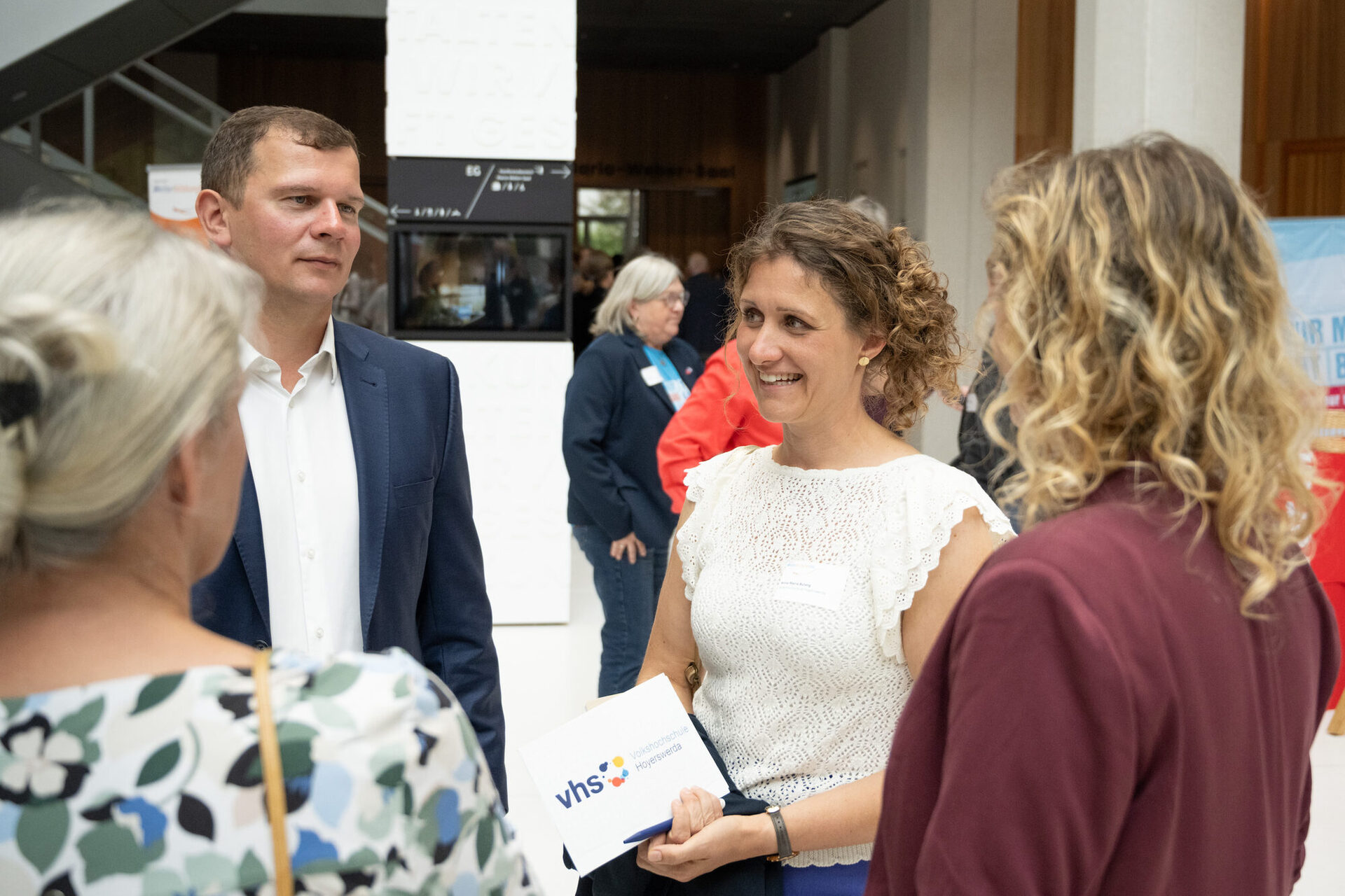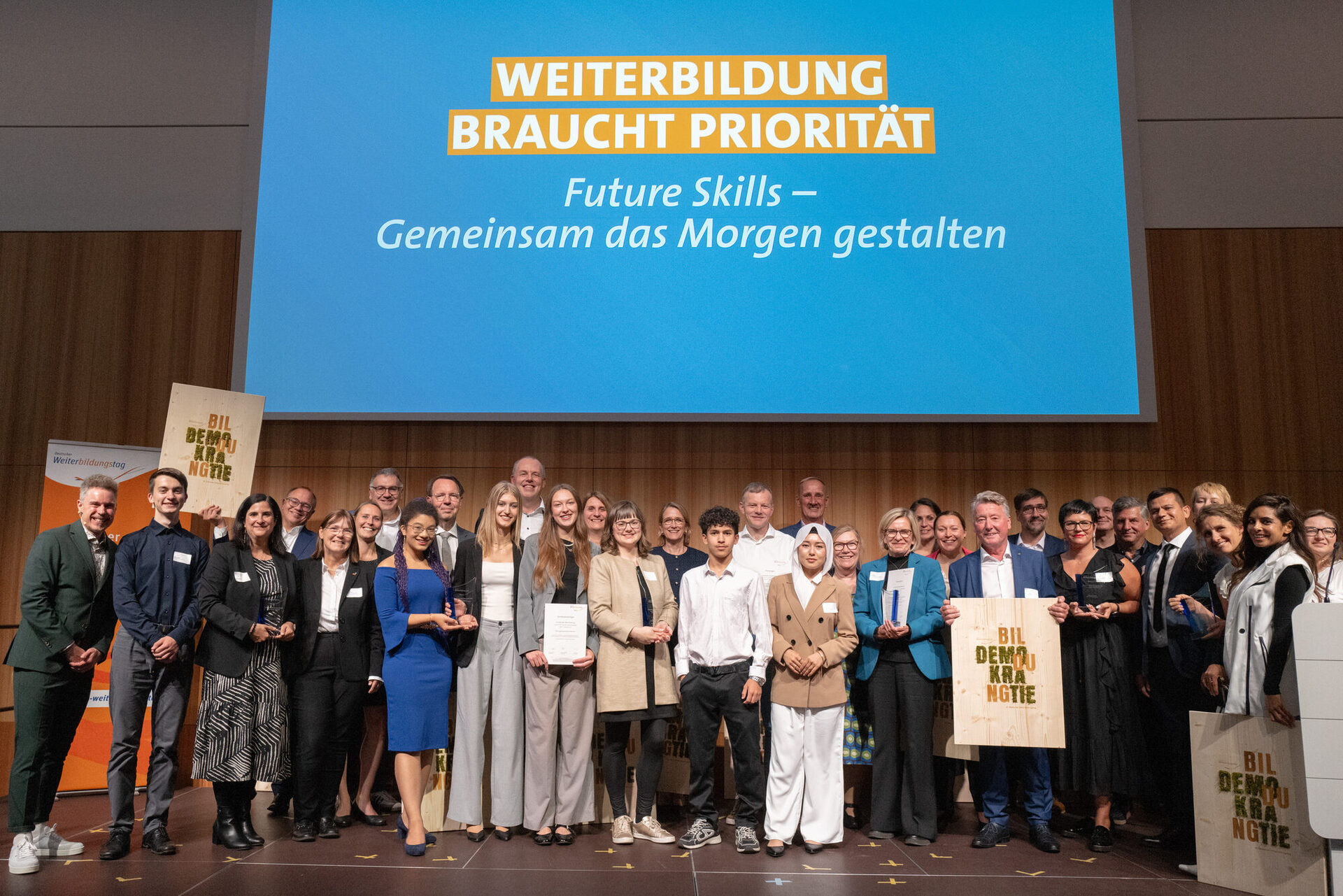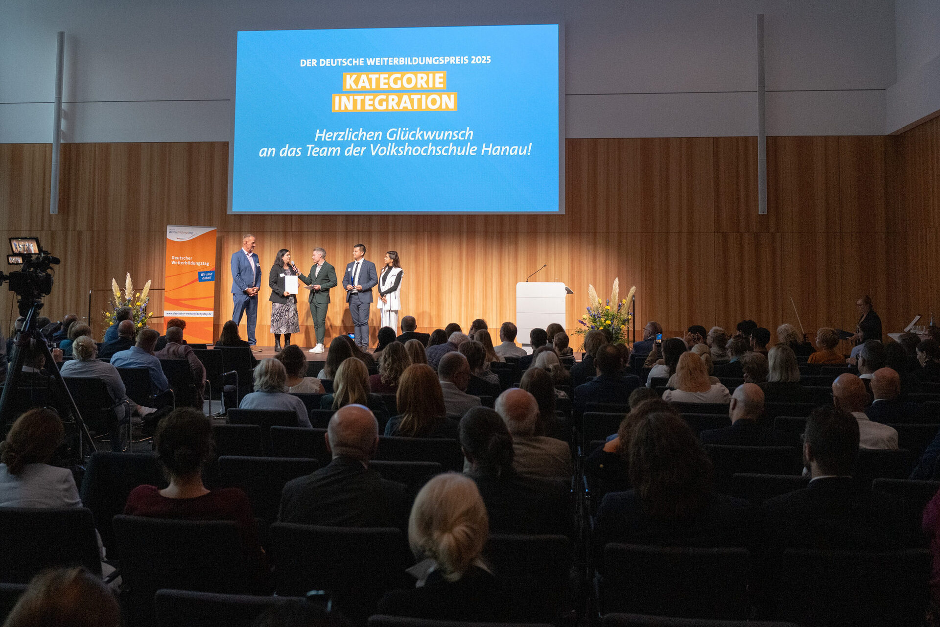 Mit einem Festakt in Gegenwart von Elke Büdenbender, der Ehefrau des Bundespräsidenten, und Bundesarbeitsministerin Bärbel Bas wurden am 17. September in Berlin die diesjährigen „Vorbilder der Weiterbildung“ geehrt. Unter den fünf vom Deutschen Weiterbildungstag 2025 ausgezeichneten Personen und Institutionen waren gleich zwei Volkshochschulen.