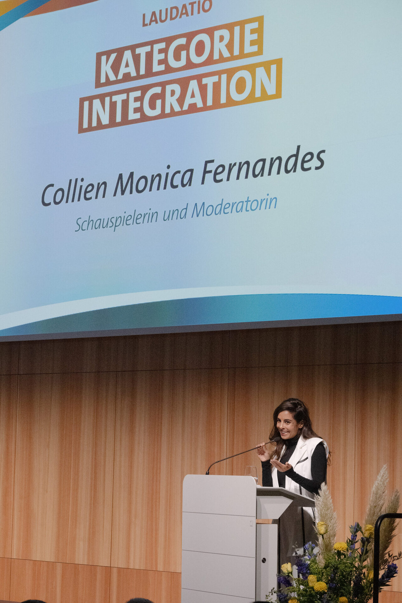 Die Ehrung als Vorbild der Weiterbildung im Bereich Integration ging an das Team der Volkshochschule Hanau. Im Stadtteil Kesselstadt, wo einer der rassistischen Terroranschläge von 2020 verübt wurde, führt die Volkshochschule Bildungsangebote durch, die insbesondere Menschen mit Zuwanderungsgeschichte ansprechen. Laudatorin Collien Monica Fernandes hob hervor, welche Anforderungen dies an das vhs-Team stellt: „Wer in Hanau Bildungsarbeit mit dem Ziel gesellschaftlicher Integration Zugewanderter leistet, braucht ein hohes Maß an Einfühlungsvermögen. Die Mitarbeiter*innen und auch die Kursleitenden der Volkshochschule Hanau verfügen darüber. So gelingt es ihnen, Vertrauen wiederherzustellen und das gesellschaftliche Projekt Integration fortzuführen.“