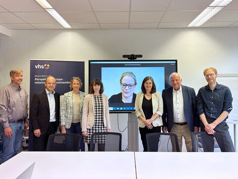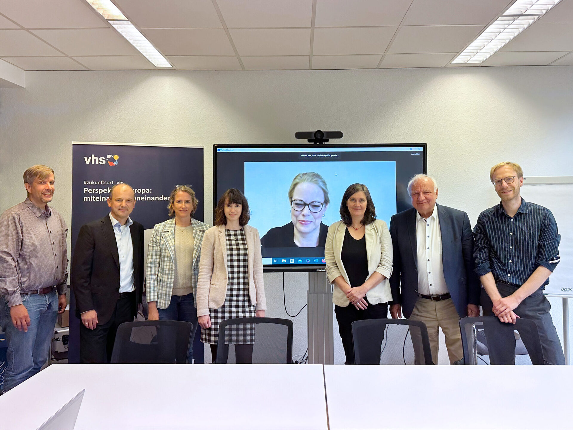 Viermal im Jahr treffen sich Vertreter*innen des Bundesamtes für Migration und Flüchtlinge (BAMF) sowie ausgewählter Verbände, um sich zu wichtigen Fragen rund um Integrations- und Berufssprachkurse zu beraten. Zum jüngsten Termin im September lud dieses Mal der Deutsche Volkshochschul-Verband (DVV) nach Bonn ein. Für den DVV nahmen Verbandsdirektorin Julia von Westerholt sowie Sascha Rex und Stefan Markov aus der Stabsstelle Grundsatz und Verbandsentwicklung teil, zu Gast waren Angelika Druglat und Benjamin Beckmann (beide BAMF), Andrea Hartig (Internationaler Bund), Amadeus Hempel (Interkulturelle Bildung Hamburg e.V.) sowie Ellen Jacob (Verband Deutscher Privatschulverbände e.V.), die sich virtuell zur Runde dazuschaltete.