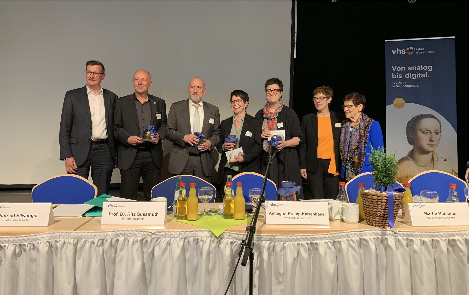 Rabanus folgt auf Dr. Ernst Dieter Rossmann MdB, der das Amt des DVV-Vorsitzenden nach drei Amtsperioden satzungsgemäß abgeben musste. Rossmann, der Vorsitzender des Bundestagsausschusses für Bildung, Forschung und Technikfolgenabschätzung ist, hatte den Vorstandsvorsitz 2007 übernommen. Begleitet von minutenlangen Standing Ovations ernannte die Mitgliederversammlung Dr. Ernst Dieter Rossmann einstimmig zum Ehrenvorsitzenden und würdigt damit dessen langjähriges Engagement für die Weiterbildung und die Volkshochschulen im politischen Raum. Seine eigene Bilanz nach zwölf Jahren als Vorsitzender: „Wir sind politisch hoch anerkannt, wir sind organisatorisch gefestigt, wir haben an Ausstrahlungskraft gewonnen.“
