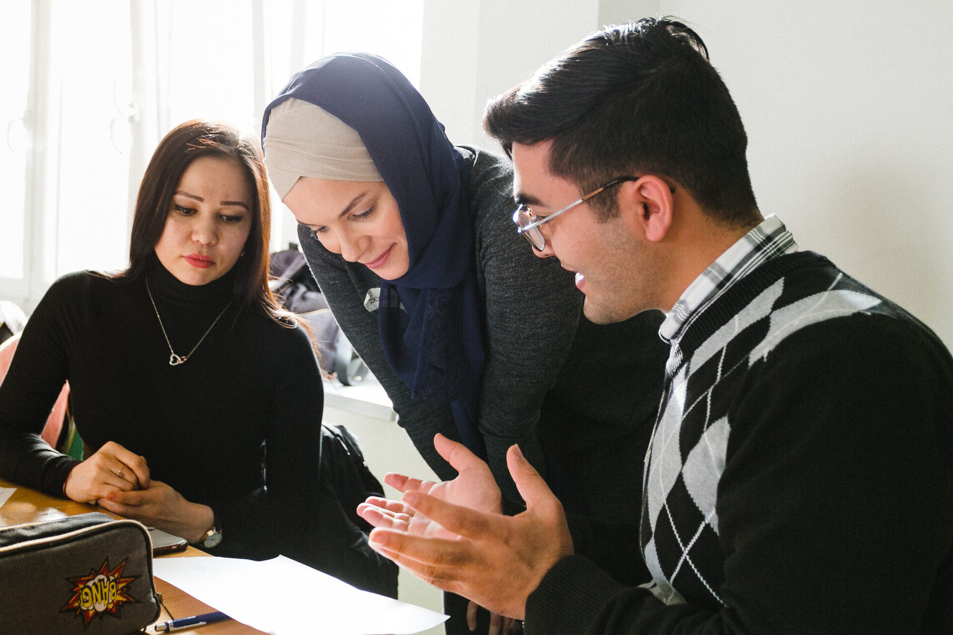 Die Idee kam von Jugendlichen, die an der Stadtteil-Volkshochschule im Schweriner „Brennpunkt“-Quartier Mueßer Holz auf ihren Schulabschluss hinarbeiten. Sie erzählten im Kunstunterricht, dass sie gerne mal Comics zeichnen würden. Außerdem war im Unterricht immer wieder das „Kopftuch“ einiger Teilnehmerinnen Gesprächsthema. Daraufhin entwickelte die Volkshochschule den Workshop „Frauen und Männer in der Zuwanderungsgesellschaft“, bei dem die Jugendlichen sich kreativ mit dem Themenfeld auseinandersetzen konnten.