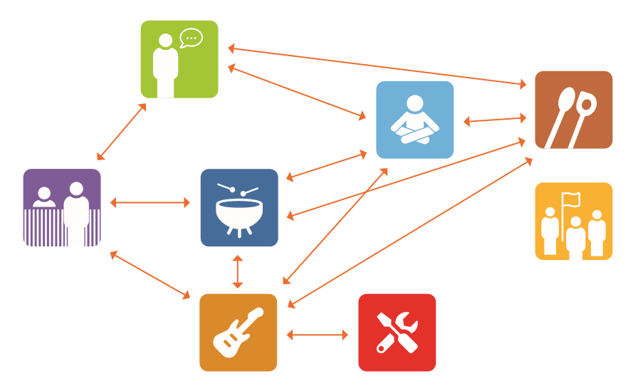 - Es bietet eine Reihe unterschiedlicher gesellschaftlicher Gruppen, die beliebig kombiniert werden können.