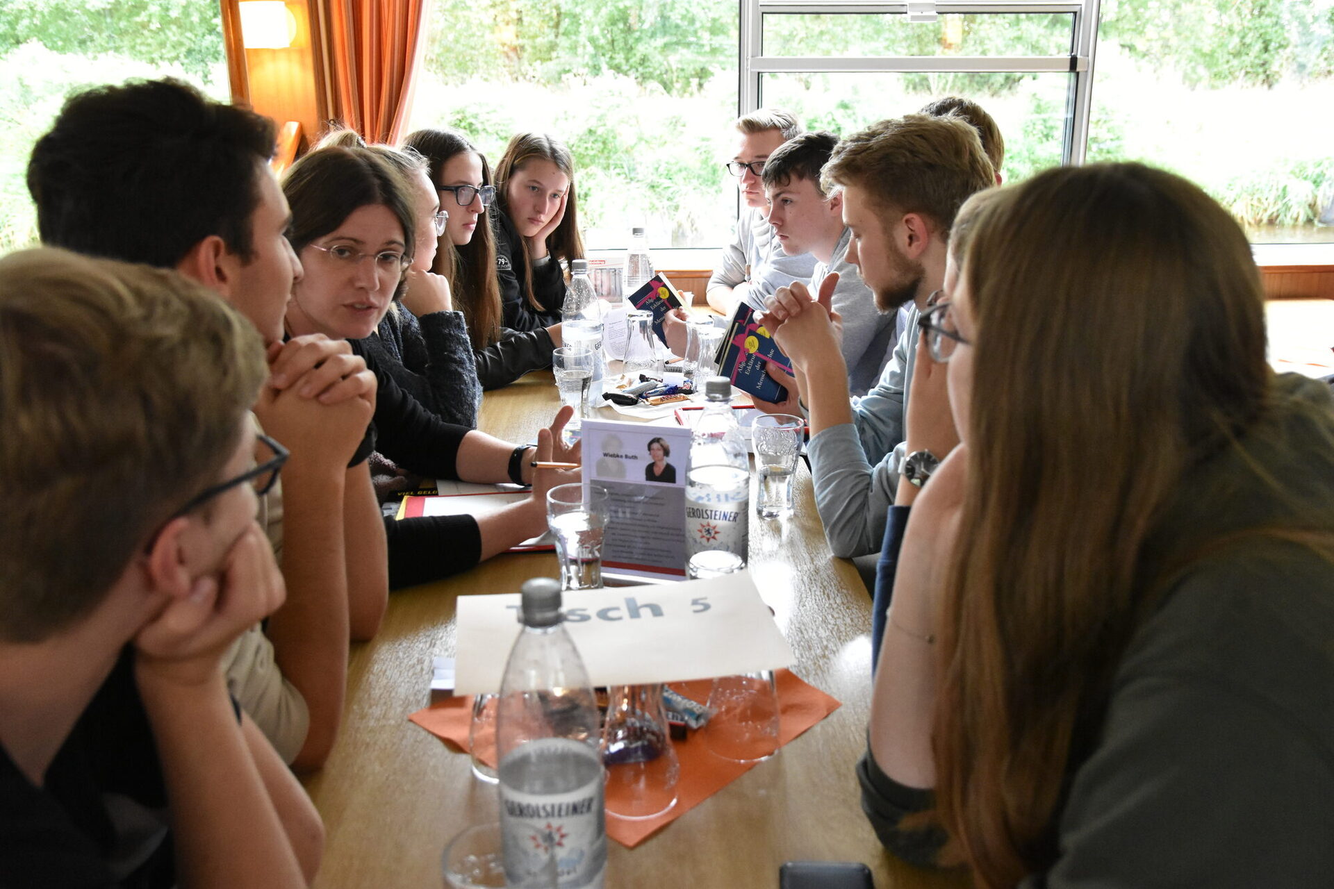 Moderiert wurden die Tischgespräche von Jugendlichen. Sie hatten sich in einem speziellen Workshop auf die Diskussionsrunden und ihre Rolle als Coaches intensiv vorbereitet. Ihre Aufgabe war es, die jeweiligen Expert*innen vorzustellen. Zudem eröffneten sie das Gespräch, moderierten, fragten nach und fassten die Ergebnisse der Runde zusammen.