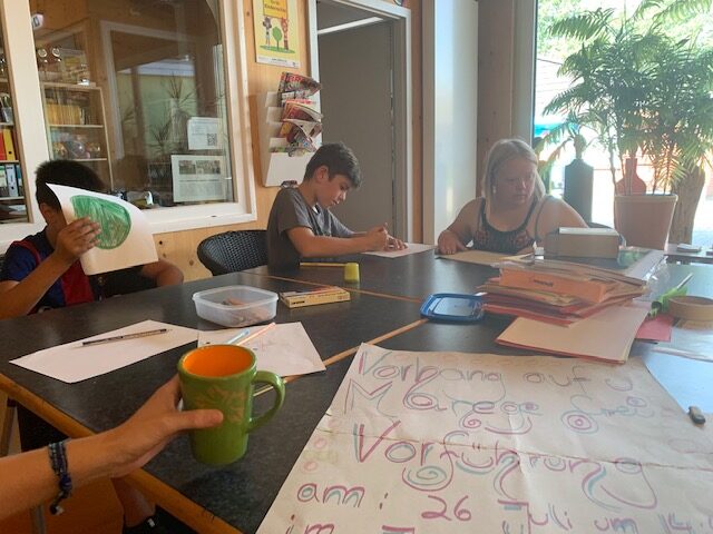 Bei der Zirkusvorstellung im Jugendcafé des Kinder- und Jugendwerks heißt es dann: „Vorhang auf und Manege frei!“ Mit viel Witz und hoher Konzentration ließen sich die jungen Künstler*innen nicht von den hohen Temperaturen an diesem Sommernachmittag irritieren und präsentierten ein breites Programm. Es gab Akrobat*innen, Clowns und Skechtemeister*innen, Einradkünstler*innen, Hula-Hopp-Artist*innen und eine Solo-Gesang-Performance zu bestaunen. Zur Abkühlung und als besonderes Highlight rückte ein Feuerwehrfahrzeug zu einem besonderen Einsatz an – ein Tanz im Regen mit Eltern, Geschwistern und weiteren Gästen.