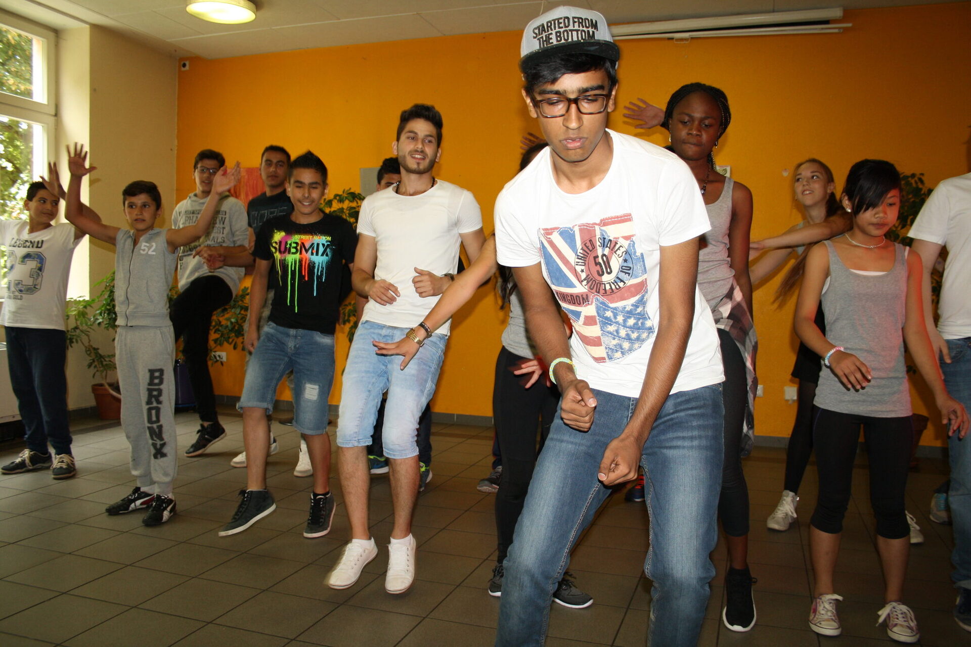 Ob die Kinder und Jugendlichen aus Syrien stammen oder aus der Ukraine, aus Rumänien oder Nigeria, aus Russland oder Afghanistan – beim talentCAMPus haben sie einen Draht zueinander gefunden. „Ich tanze hier mit meinen neuen Freunden“, freut sich Antonio aus Rumänien, ein wahres Tanz-Talent. Überraschend viele Jungs sind während des talentCAMPus in den Tanz-Workshop von Helder Rodriguez gestürmt. Gemeinsam haben sie eine Choreographie entwickelt, die folkloristische Elemente aus den verschiedenen Herkunftsländern enthält, die Flucht und den Verlust der Heimat als biographischen Tiefpunkt darstellt, die aber auch zeigt, wie sich alle wieder aufrichten und gemeinsam etwas Neues entwickeln.