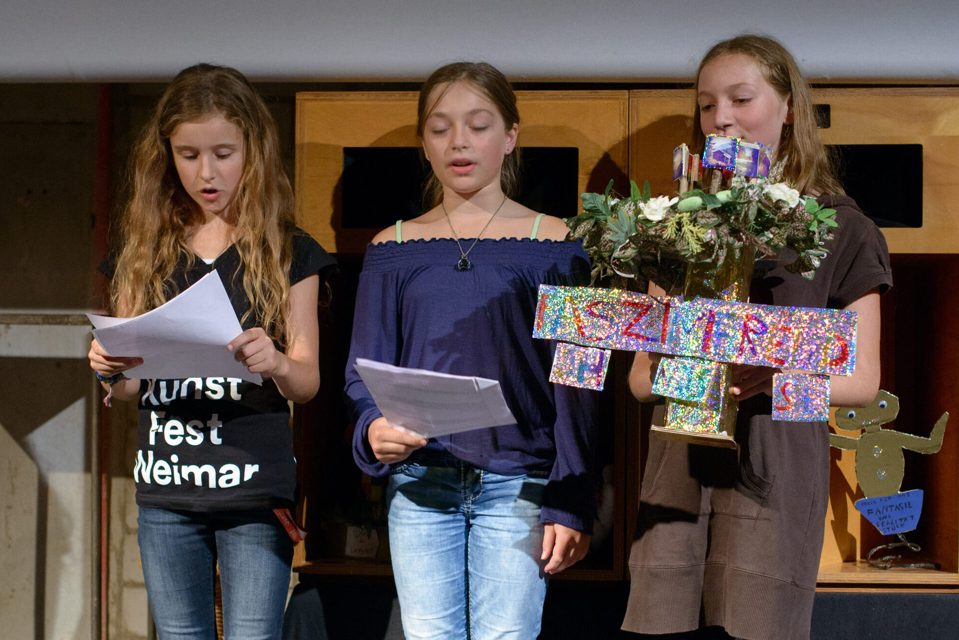 Am Tag vor der Kunstfest-Eröffnung liegen bereits vier talentCAMPus-Tage hinter der „sehr jungen Jury“. Die Jungen und Mädchen haben ihre Preiskategorien festgelegt und schon einige Trophäen gestaltet: Neben dem Preis für Lustigkeit wollen sie unter anderem auch den für „Faszinierend“ und den für „Herzergreifend“ vergeben. Die Preisvergabe ist für den 6. September geplant. Dann endet das Kunstfest 2015. Die meisten Künstler werden dann schon wieder nach Hause zurückgekehrt sein. Die junge Jury wird ihnen die Preise in großen Kisten nachsenden.
