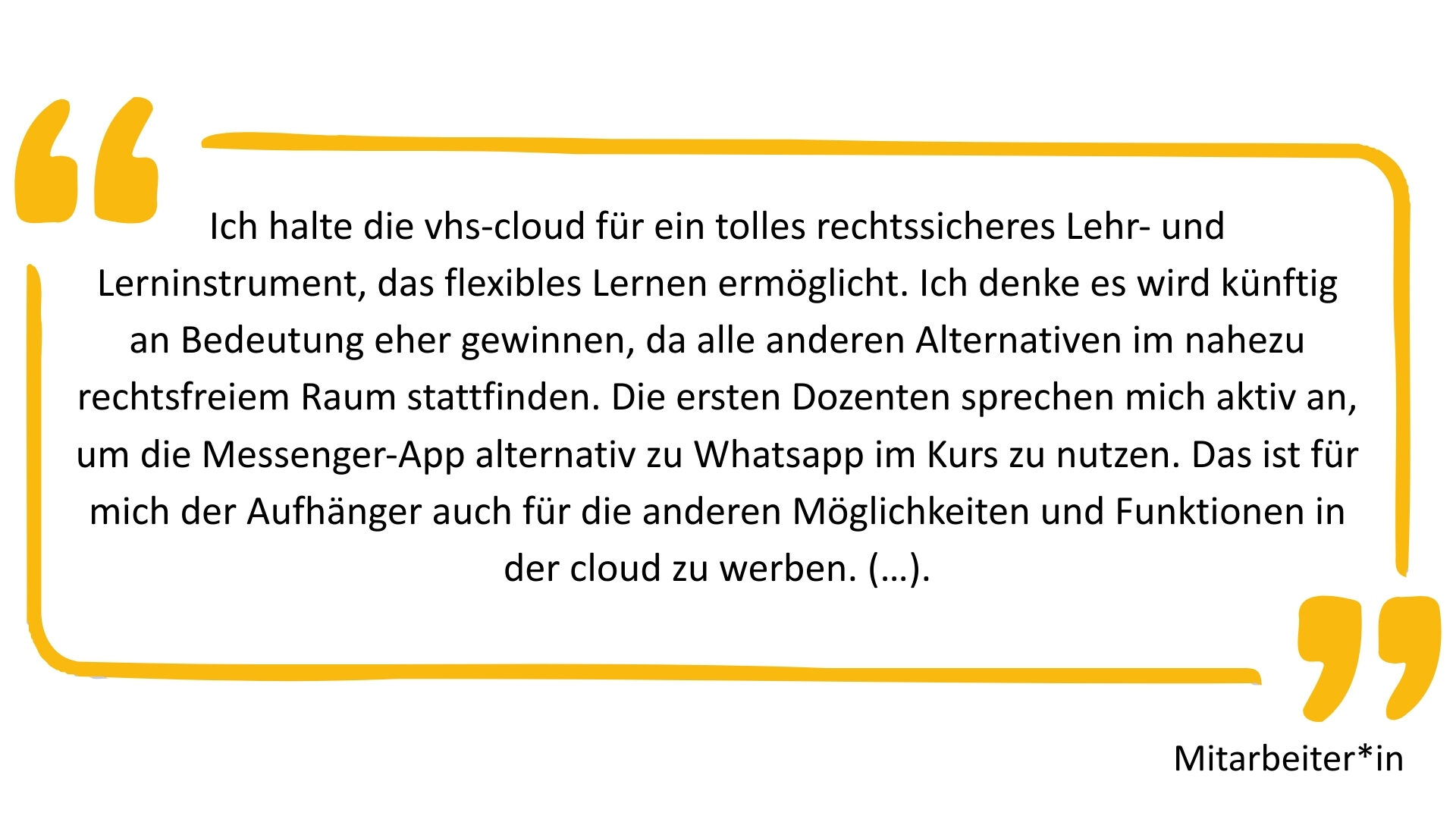 Teilnehmende begrüßen den Einsatz der vhs.cloud begleitend zum Kurs und wünschen sich dies einheitlicher und flächendeckender: