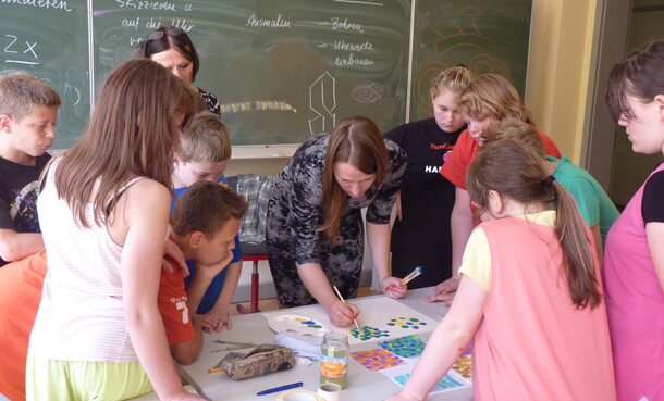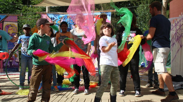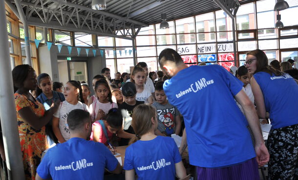 In den Schulferien haben Kinder und Jugendliche Zeit, um nicht-alltägliche Erfahrungen zu machen und verborgene Interessen und Talente zu wecken. talentCAMPus ermöglicht dies auch 6- bis 18-Jährigen aus bildungsbenachteiligten Familien bundesweit – meist an den Volkshochschulen vor Ort. In ein- oder mehrwöchigen Projekten befassen sich die Teilnehmer*innen intensiv mit unterschiedlichen Aspekten kultureller Bildung und werden selbst künstlerisch aktiv. Die Angebote sind vielfältig und niedrigschwellig, sodass keine Vorkenntnisse nötig sind.