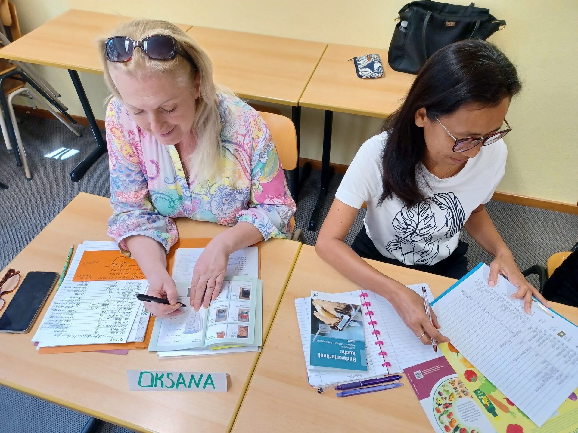 An allen Standorten werden den Teilnehmer*innen berufsbezogene Sprachkenntnis vermittelt. Das ist wichtig, denn „sprachliche Überforderung kann schnell dazu führen, dass Menschen in der Qualifizierungsmaßnahme aufgeben“, sagt Dorothea Martini von der vhs Schwäbisch Gmünd. In Gmünd wurden darum passend zu den Inhalten der Qualifizierungen für hauswirtschaftliche Berufe thematische Kursmodule entwickelt, unter anderem zu den Themen „Umweltschutz“, „Hygiene“, „Ernährung“ und „Digitales“.