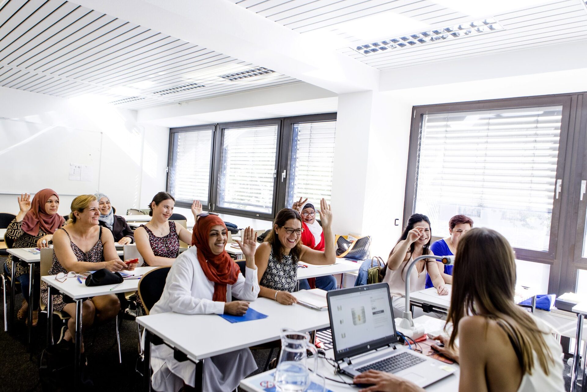 Dass mona lea die Teilnehmerinnen bei der Orientierung ganzheitlich unterstützt, wird mit einem Blick auf die Programminhalte deutlich. Denn neben der beruflichen Weiterbildung im jeweiligen Qualifizierungsbaustein und intensivem Sprachtraining sind auch Digitalisierung, Medienkompetenz oder Resilienz Themen im Unterricht. Während der gesamten Qualifizierung wird eine sozialpädagogische Begleitung angeboten, auch eine gebührenfreie Betreuung für Kinder im Alter von 18 Monaten bis 5 Jahre kann im selben Gebäude in Anspruch genommen werden.