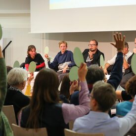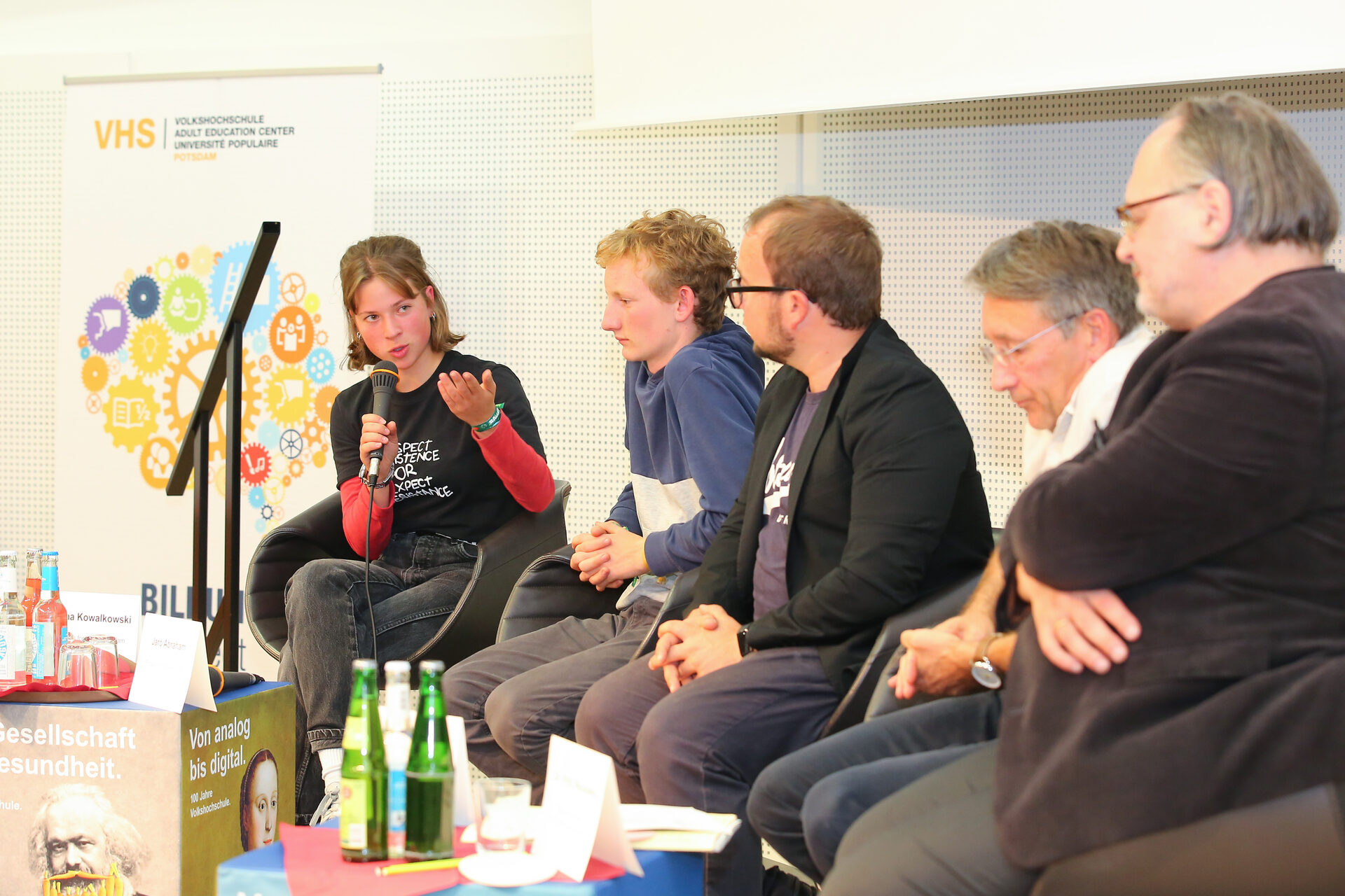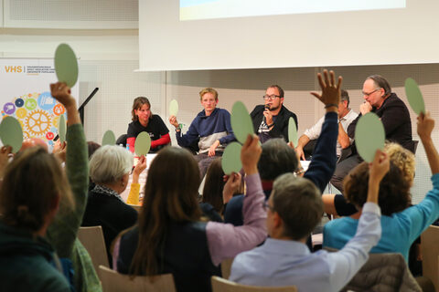 In Zusammenarbeit mit den Landesverbänden und den Volkshochschulen in Haar, Mainz, Duisburg und Potsdam organisierte der DVV dezentral vier Diskussionsveranstaltungen zu aktuellen Themen wie „Klimawandel“, „Fake News“ oder „Stärkung des gesellschaftlichen Zusammenhalts“. Das Besondere: die Podiumsdiskussionen mit prominenten Gästen aus Politik, Medien, Wissenschaft und der vhs-Szene wurden per Livestream in Volkshochschulen im ganzen Bundesgebiet übertragen und ergänzten so das Programm der Volkshochschulen vor Ort
