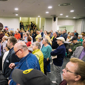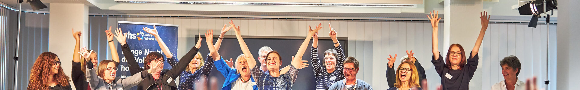 Miteinander diskutieren, lernen, singen, tanzen und feiern: So lässt sich die bundesweite Lange Nacht der Volkshochschulen zusammenfassen. Über 420 Volkshochschulen und vhs-Außenstellen hatten aus Anlass des Jubiläumsjahrs „100 Jahre vhs“ am Abend des 20. September 2019 geladen, um Einblicke in ihr Kursangebot, ihre Arbeit und ihre Räumlichkeiten zu geben. Gemeinsam mit Mitarbeiterinnen und Mitarbeitern, Lehrkräften und Kooperationspartner gestalteten die Bildungsstätten zu diesem Zweck vor Ort ein buntes und abwechslungsreiches Programm zum gemeinsamen Motto „zusammenleben. zusammenhalten.“ Mit diesem fügte sich die Lange Nacht thematisch ein in das Herbstsemester-Programm, das im 100-jährigen Jubiläumsjahr der Volkshochschulen bundesweit den Schwerpunkt auf gesellschaftlichen Zusammenhalt setzt.