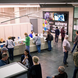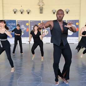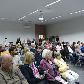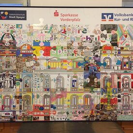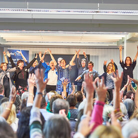 An der vhs Offenbach trugen Mitarbeitende eigens recherchierte Texte zu unterschiedlichen Zeitabschnitten der 100-jährigen Geschichte der Volkshochschule Offenbach vor. Abgerundet wurde der Auftritt durch eine vhs-Hymne, die von Mitarbeitenden der vhs im Chor gesungen wurde. „Die vhs, die ist für alle da“, heißt es im Refrain und am Ende sang der ganze Saal. Die gesamte Hymne als Video unter youtu.be/HhcgR1Z3o8Y (Öffnet in einem neuen Tab)