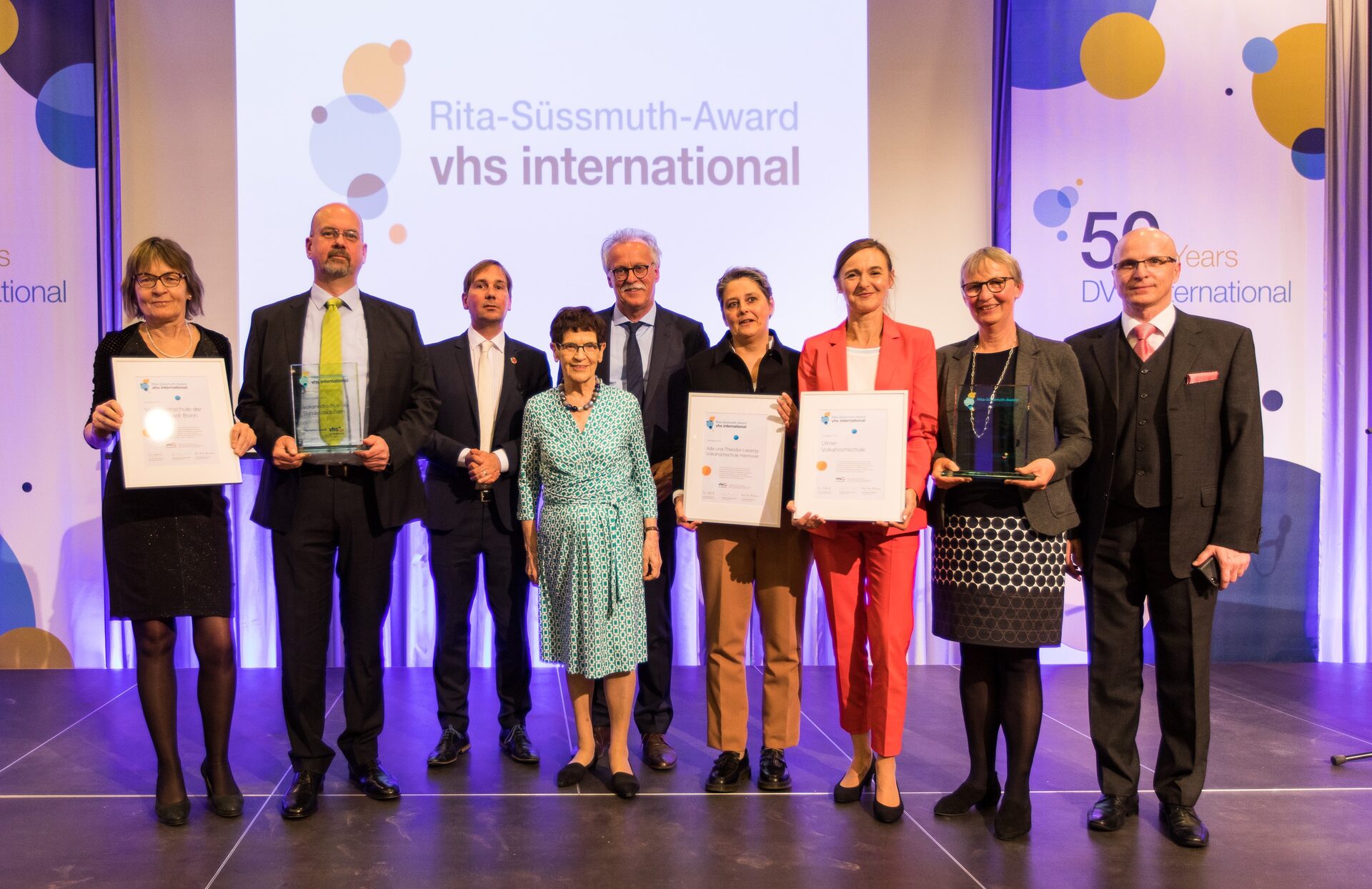Zugleich war sie als Mitglied im Kuratorium von DVV International eine Anwältin für die internationale Zusammenarbeit in der Erwachsenenbildung weltweit. Ihrem internationalen Engagement zu Ehren lobt DVV International seit 2019 den „Rita-Süssmuth-Preis für die internationale Volkshochschule“ aus. Zuletzt wurde der Preis am 04. Juni 2025 im Rahmen der Generalversammlung der European Association for the Education of Adults (EAEA) in Leipzig an Volkshochschulen verliehen, die – ganz nach Süssmuths Vorbild – in ihrer Arbeit in besonderem Maße internationale Bezüge herstellen, Brücken bauen, Menschen willkommen heißen und Perspektiven erweitern.