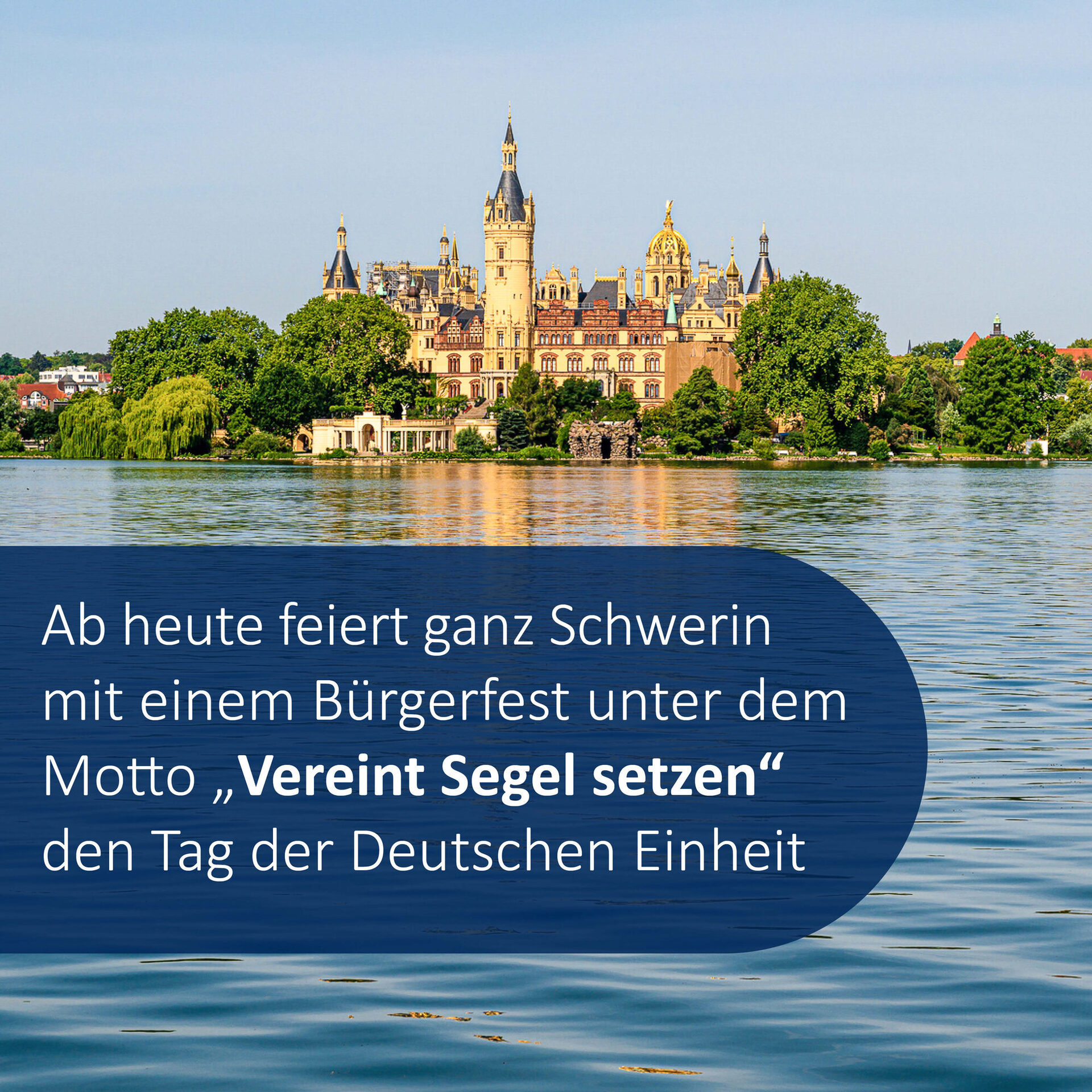 Vom 02.–04. Oktober 2024 finden in Schwerin die zentralen Feierlichkeiten zum Tag der Deutschen Einheit statt. Parallel zur offiziellen Feier macht die vhs Schwerin das Motto der Bundesratspräsidentschaft Mecklenburg-Vorpommerns „Vereint Segel setzen“ in einem dreitägigen Bildungsprojekt mit Jugendlichen greifbar.