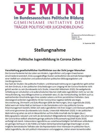 Stellungnahme der GEMINI: Politische Jugendbildung in Corona-Zeiten