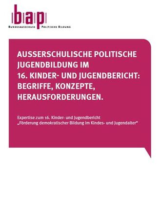 Unter dem Titel „Außerschulische politische Jugendbildung im 16. Kinder- und Jugendbericht: Begriffe, Konzepte, Herausforderungen” hat die GEMINI („Gemeinsame Initiative der Träger Politischer Jugendbildung im bap“) eine Expertise veröffentlicht. Autor ist Dr. Alexander Wohnig (Jun.-Prof. für Didaktik der Sozialwissenschaften an der Universität Siegen).
