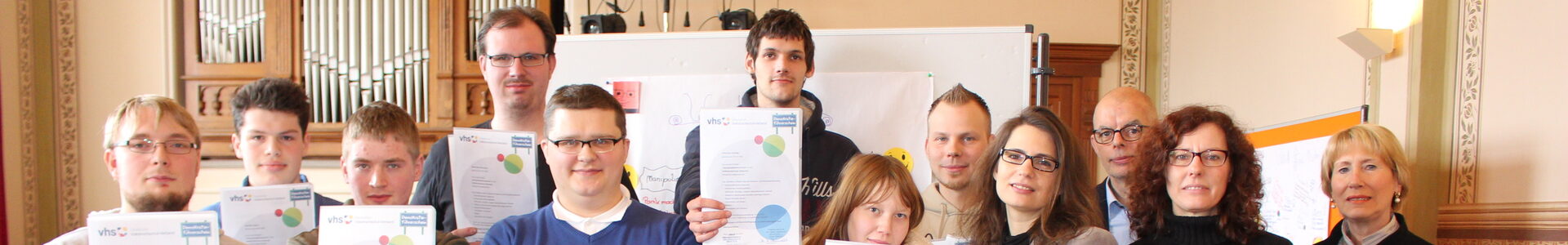 Doch nun wagte die Volkshochschule Gütersloh etwas Neues – nach dem Motto „Was gut läuft, kann man noch besser machen“. Sie bewarb sich beim Deutschen Volkshochschul-Verband als Modellstandort für ein neues Konzept – mit Erfolg: Die Volkshochschule Gütersloh bot als erste (zeitgleich mit der VHS Donauwörth) den „Demokratieführerschein inklusiv“ an – 14 junge Menschen zwischen 16 und 25 Jahren mit und ohne Behinderungen nahmen von Oktober bis Dezember 2014 daran teil.