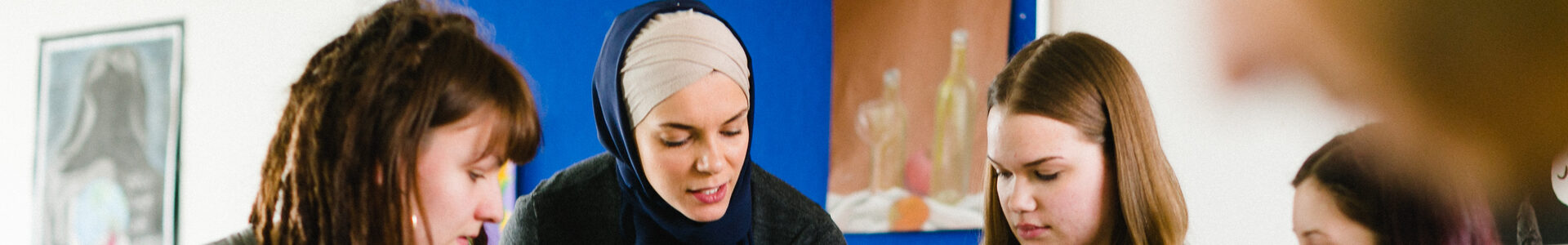 Die Psychologin und Cartoonistin Soufeina Hamed, alias „Tuffix“, konnte als Referentin gewonnen werden und gestaltete den ersten Workshoptag am 2. März 2020. Pädagogisch begleitet wurde sie dabei von einer Kunsterzieherin und vhs-Kursleiterin. Tuffix vermittelte den Jugendlichen zunächst Grundlagenwissen über Comics und stellte anschließend eine Auswahl ihrer eigenen Arbeiten vor. In Tuffix‘ Comics geht es häufig um Themen wie Identitätssuche, Rassismus und Islamophobie. Darüber kam sie dann auch mit den jugendlichen Teilnehmenden, die mehrheitlich eine Zuwanderungsgeschichte haben, ins Gespräch. Thema waren auch Geschlechterrollenbilder und Unterschiede in der Herkunfts- und in der Zuwanderungsgesellschaft. Durch die vielfältige Zusammensetzung der Gruppe kamen sehr unterschiedliche Perspektiven zur Sprache.