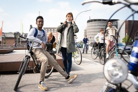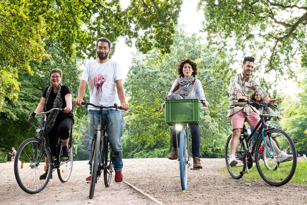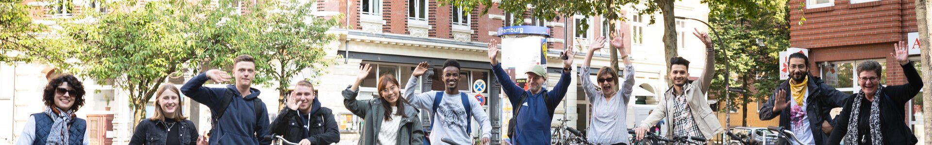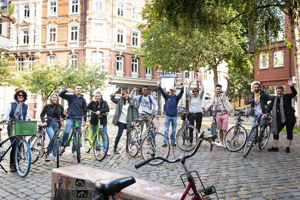Interessante Orte entdecken, sich mit geschichtlichen und politischen Themen beschäftigen, Menschen kennenlernen und nebenbei die deutschen Sprachkenntnisse verbessern – und das auch noch corona-konform. Diese Kombination lockte im Sommer 2020 viele junge Menschen aufs Fahrrad, um im Rahmen eines Angebots der Hamburger Volkshochschule nachhaltige Bildungsreisen „On Bike“ zu erleben. Die Touren richteten sich an jugendliche Geflüchtete, Migrant*innen und schon länger in Hamburg lebende junge Menschen.