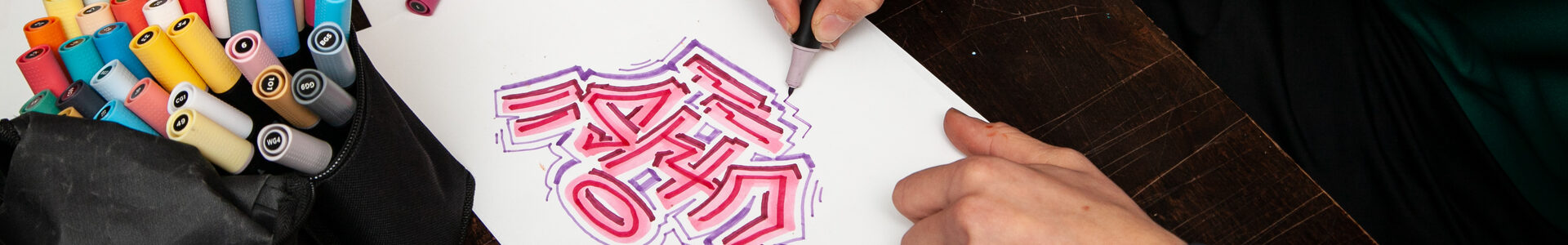 Zu Beginn des Projekts, in dessen Verlauf sich die Teilnehmer*innen 17 Mal trafen, lernten die Jugendlichen Schritt für Schritt, mit unterschiedlichen Medien ihre Graffitis zu skizzieren. Zunächst entwarfen sie ihre Motive aber ganz „old school“ mit Bleistift und Papier. So erhielten sie ein grafisches Grundverständnis für die individuelle Umsetzung von Buchstaben, Figuren und Gegenständen. Im nächsten Schritt und unter Anleitung der Kursleiter setzten sie sich mit PC-Programmen zur Erstellung von Grafiken auseinander.