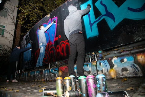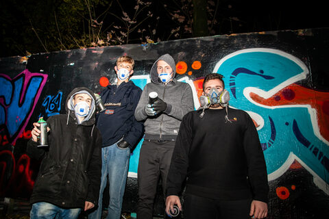 Im Verlauf des Projekts feilten die jungen Teilnehmer*innen daran, ihre Ideen vom Papier auf die Wand zu bringen. Dass dabei auch das Gemeinschaftsgefühl und das gegenseitige Verantwortungsbewusstsein gestärkt wurden, zeigte sich vor allem bei dem Unterfangen, gemeinsam ein Graffiti zu entwerfen und zu sprayen. Aber auch die Verpflegung und das Kochen für den Kurs wurden von den Jugendlichen und den Kursleitern gemeinschaftlich organisiert – auch hier war Teamgeist gefragt. Keine Rolle spielte hierbei, wo jemand herkam.