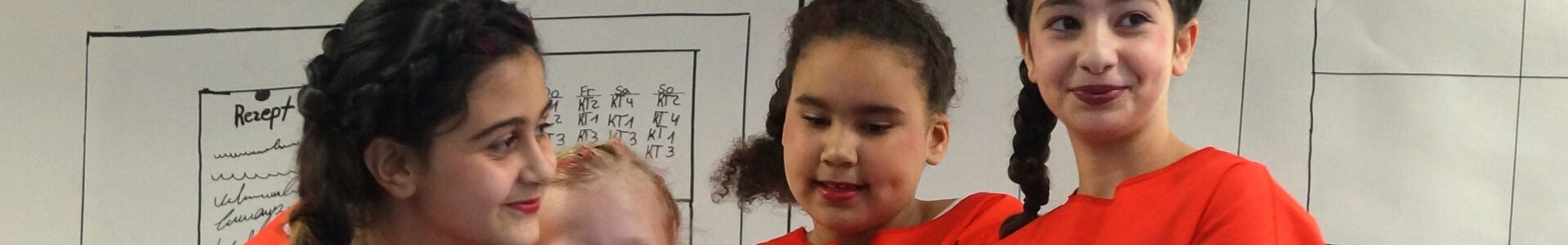 Vor der Carl-Orff-Realschule plus in Bad Dürkheim stehen zwei junge Teilnehmerinnen des einwöchigen Herbstferienprojektes. Sie nehmen die Gäste der Abschlussveranstaltung freundlich in Empfang und lotsen sie zum Aufführungsort. Im Backstage-Bereich fiebern die Mädchen aus dem Landkreis Bad Dürkheim im Alter von 9 bis 14 Jahren ihrem ersten Auftritt entgegen, treffen letzte Vorbereitungen und checken ihre Kostüme. Spannung liegt in der Luft.