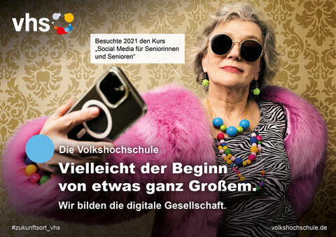 Im vhs-Markenpaket finden teilnehmende Volkshochschulen alles, was sie für den Einsatz unserer Kampagne brauchen: von flexibel einsetzbaren Anzeigen-Templates bis hin zu aufmerksamkeitsstarken Großformaten.