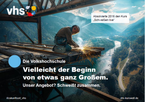 Mit eindrucksvollen Bildern und motivierenden Botschaften zeigt unsere Kampagne, welches Potenzial in Weiterbildung steckt. Denn wer heute in sich investiert, schafft die Grundlage für morgen. Unser Kampagnenmotto macht dabei eines klar: Erfolg ist nie garantiert – aber jede vhs-Erfahrung könnte der Anfang von etwas ganz Großem sein.