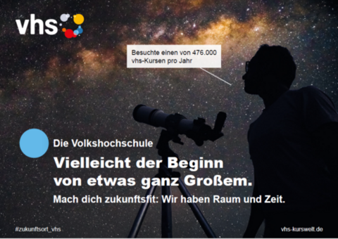 Jede große Geschichte beginnt mit einem ersten Schritt – genau hier setzt unsere neue vhs-Kampagne „Vielleicht der Beginn von etwas ganz Großem“ an. Sie richtet sich an Menschen, die ihr Leben und ihre Zukunft aktiv gestalten wollen. Sie haben den Mut, Neues auszuprobieren – und entdecken dabei vielleicht ganz neue Seiten an sich.